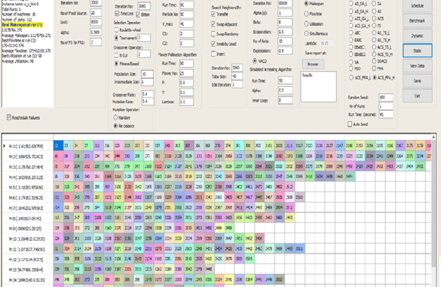 The simulator incorporates a wide array of metaheuristic algorithms, including Genetic Algorithms, Particle Swarm Optimization, Simulated Annealing, Ant Colony Optimization, Tabu Search, and more. This includes several hybrid algorithms that combine the strengths of multiple metaheuristics approaches to enhance performance and solution quality. This diversity allows the tool to address a broad spectrum of scheduling challenges by selecting the most suitable algorithm for each specific scenario. For more information click here.